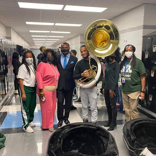 The Cass Tech Marching Band received two brand new sousaphones. The instruments were purchased from a generous $31k donation made to TTS from local Detroit music artist and WDIV Local 4 morning news anchor Evrod Cassimy.